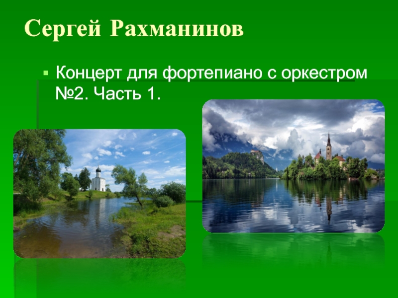 Слайд 6В произведениях Рахманинова мы слышим звучание колоколов, разливы рек. По характеру