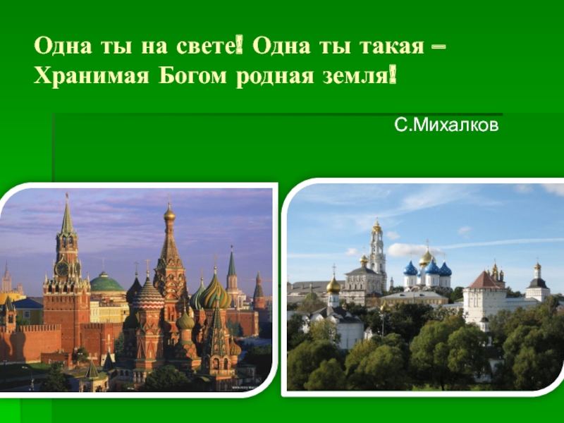 Одна ты на свете! Одна ты такая – Хранимая Богом родная земля!С.Михалков