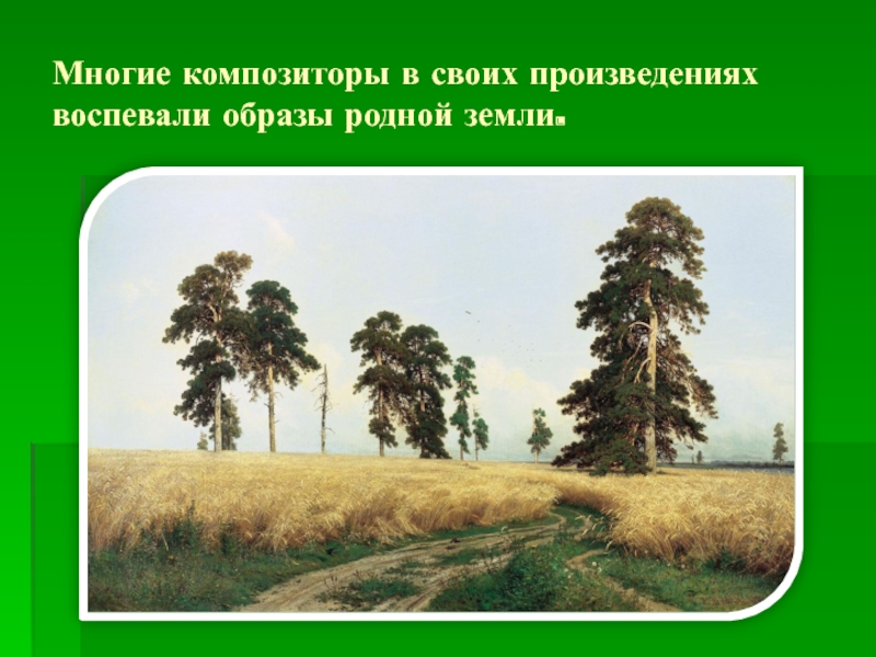 Слайд 4Многие композиторы в своих произведениях воспевали образы родной земли.
