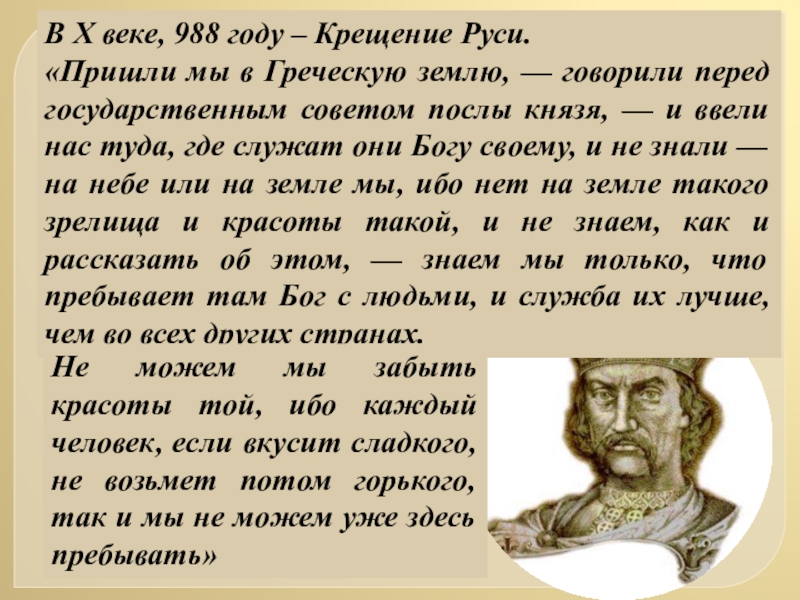 Не можем мы забыть красоты той, ибо каждый человек, если вкусит сладкого, не возьмет потом горького, так и мы не можем уже здесь пребывать»