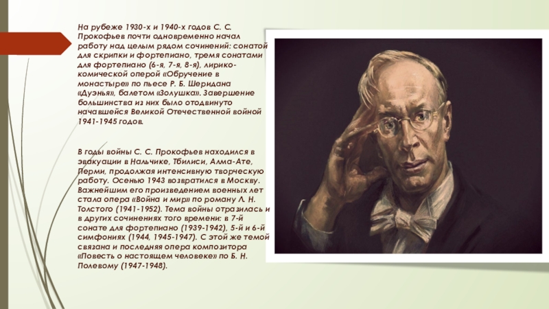 Слайд 6На рубеже 1930-х и 1940-х годов С. С. Прокофьев почти одновременно