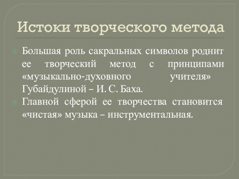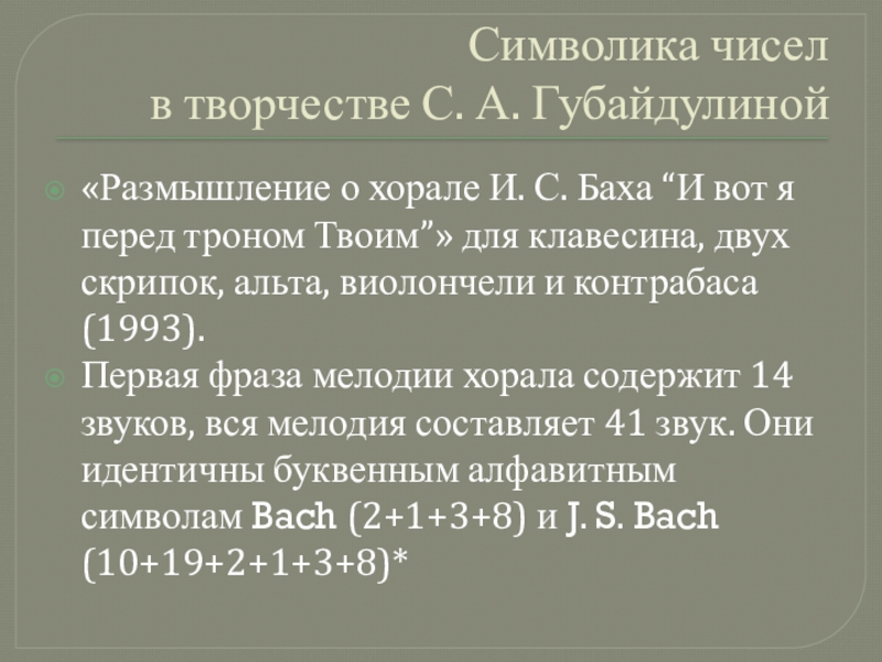 принципами «музыкально-духовного учителя» Губайдулиной – И. С. Баха.
