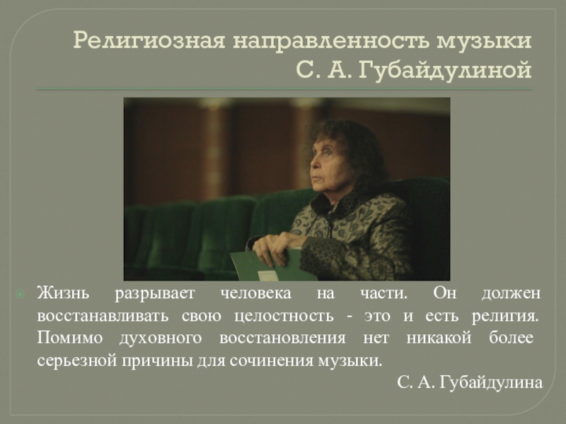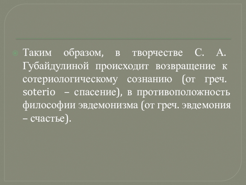 Слайд 22Таким образом, в творчестве С. А. Губайдулиной происходит возвращение к сотериологическому