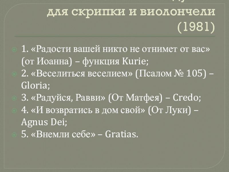 Слайд 8Концерт для скрипки с оркестром Offertorium (1980, 1982, 1986)