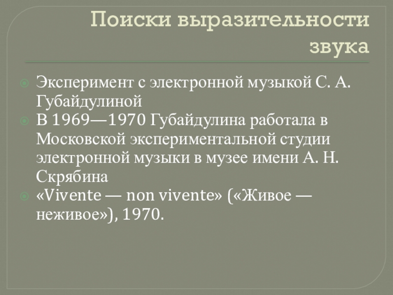 Эксперимент с электронной музыкой С. А. Губайдулиной