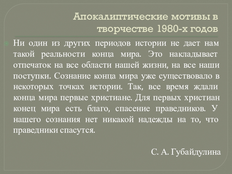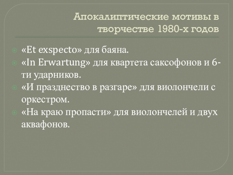 Слайд 13Апокалиптические мотивы в творчестве 1980-х годов