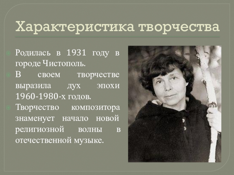 Творчество композитора знаменует начало новой религиозной волны в отечественной музыке.