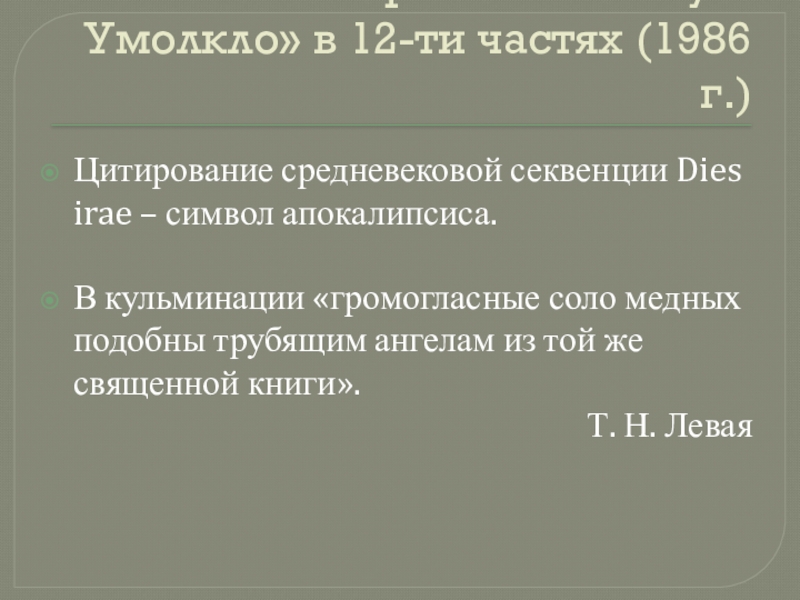 Слайд 15Симфония «Слышу... Умолкло» в 12-ти частях (1986 г.)