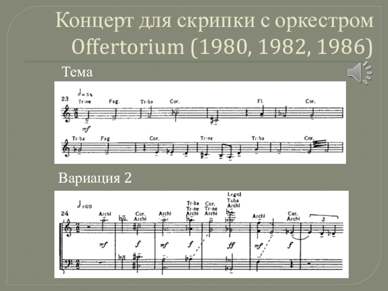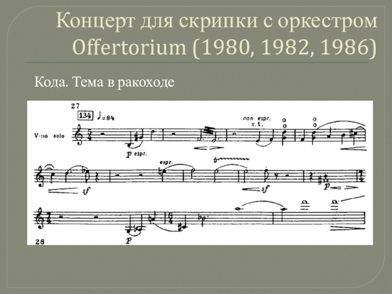 Слайд 10Концерт для скрипки с оркестром Offertorium (1980, 1982, 1986)