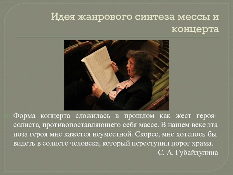 Слайд 5Идея жанрового синтеза мессы и концерта