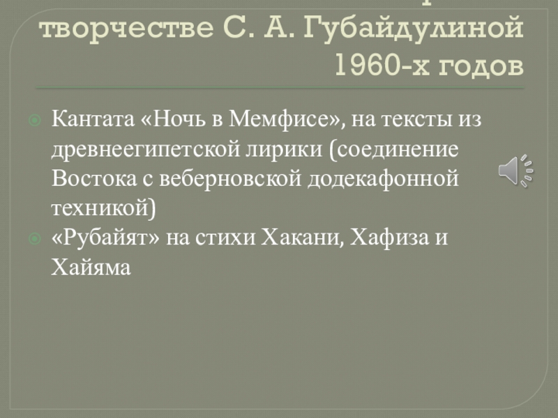 Слайд 18Восточные образы в творчестве С. А. Губайдулиной 1960-х годов