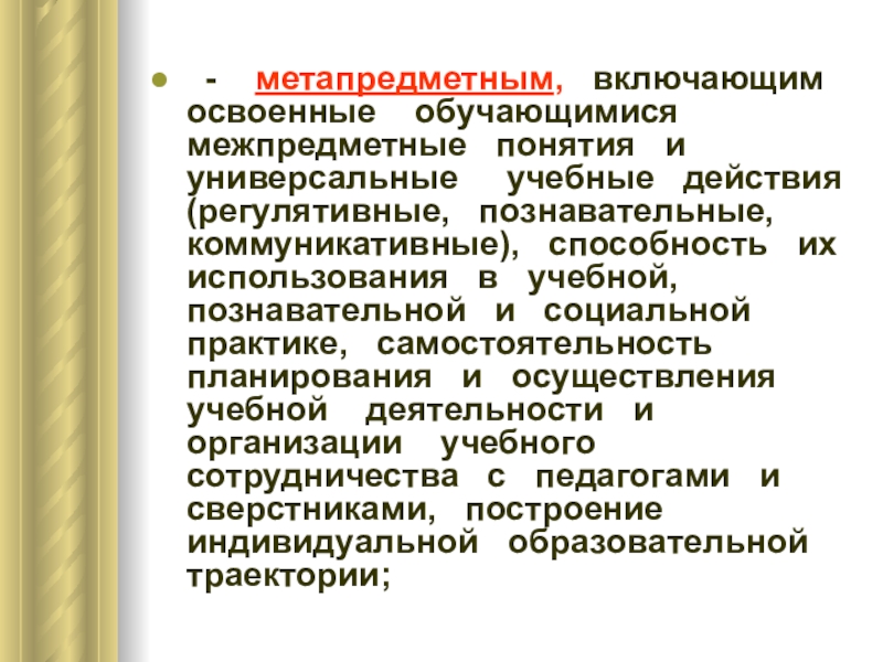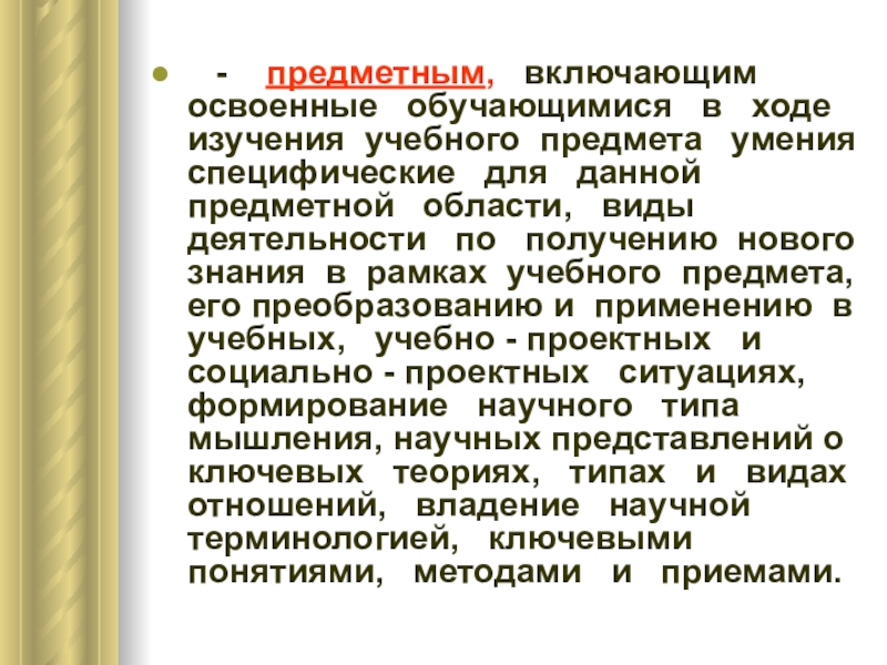 Слайд 10 - предметным, включающим освоенные обучающимися