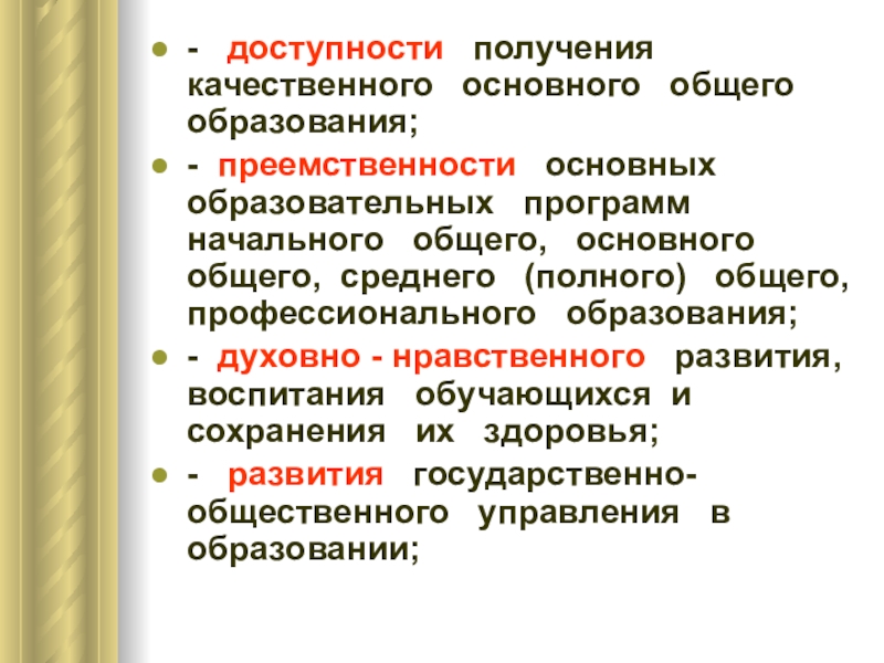 преемственности основных образовательных программ начального общего, основного общего, среднего (полного) общего, профессионального образования;