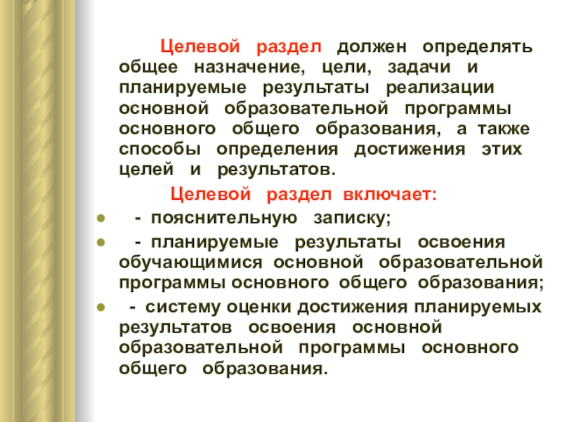 должен определять общее содержание основного общего образования и включать образовательные программы, ориентированные на достижение личностных, предметных и метапредметных результатов, в том числе: