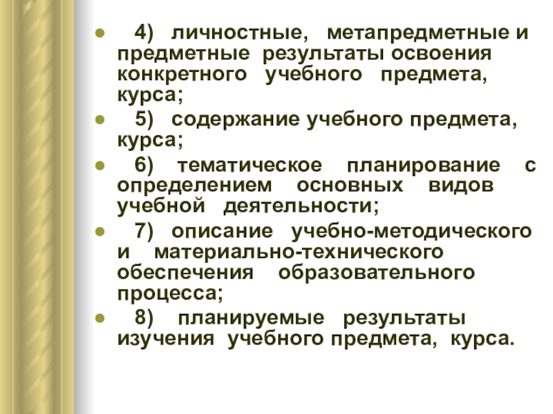 Слайд 22 4) личностные, метапредметные и предметные результаты освоения