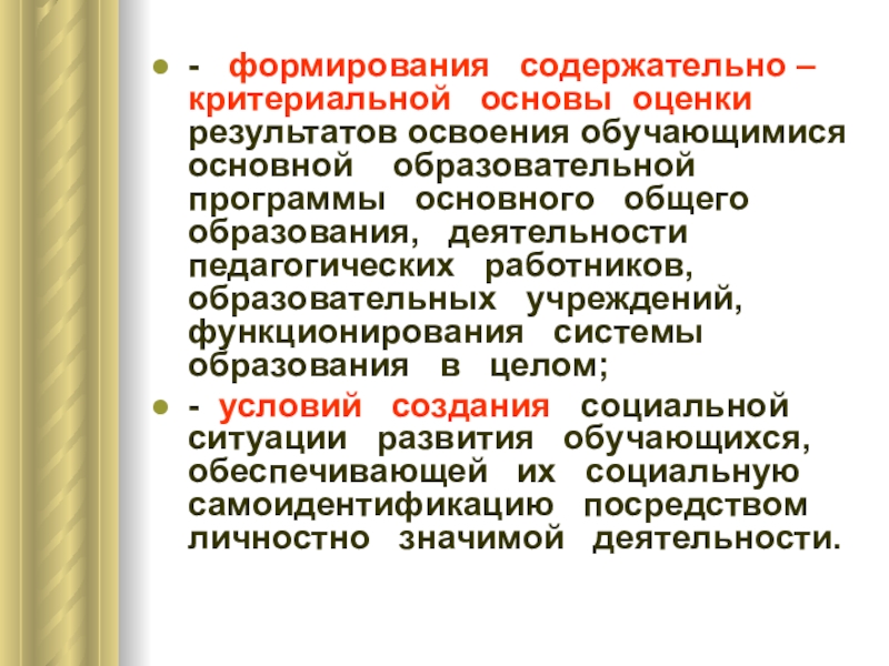 Слайд 4- формирования содержательно –критериальной основы оценки результатов освоения