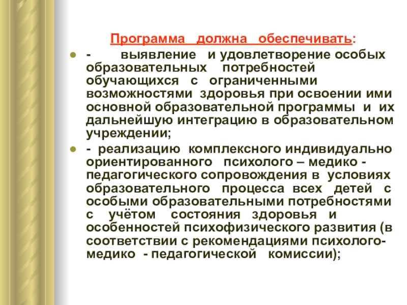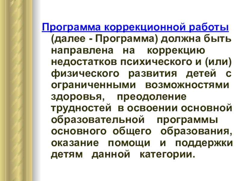 Слайд 26Программа коррекционной работы (далее - Программа) должна быть направлена на