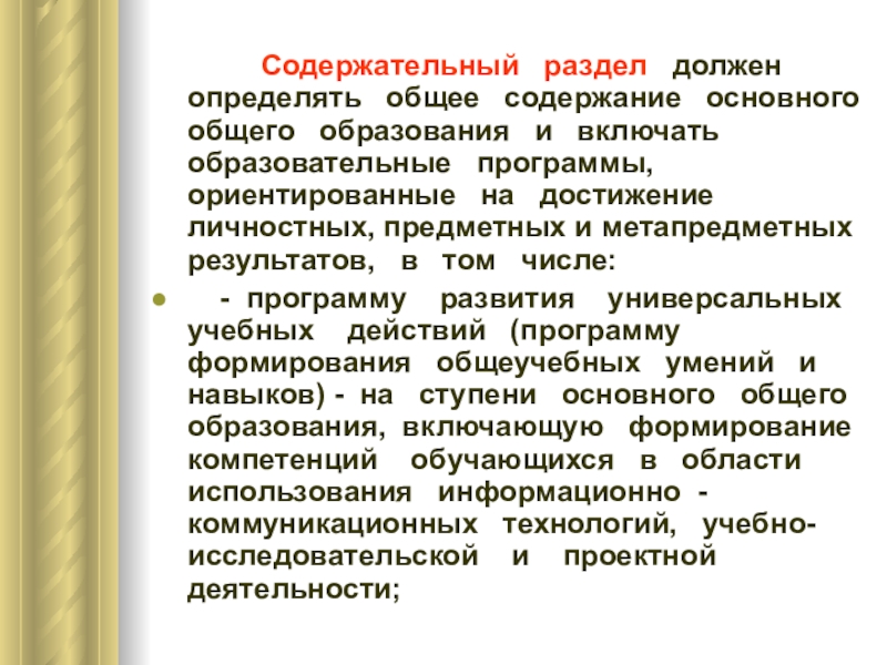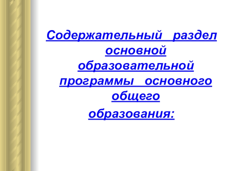 Слайд 16Содержательный раздел основной образовательной программы основного общего