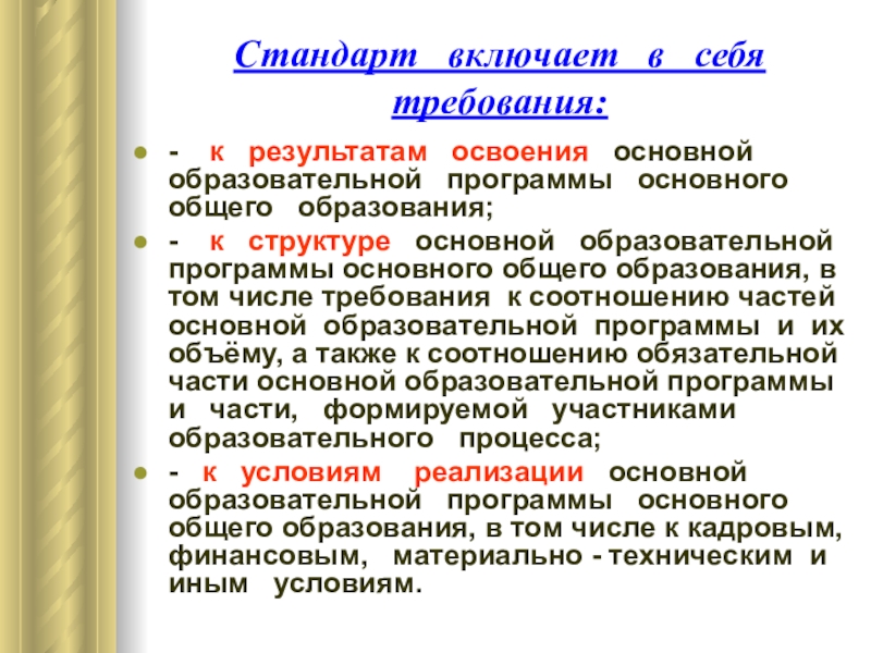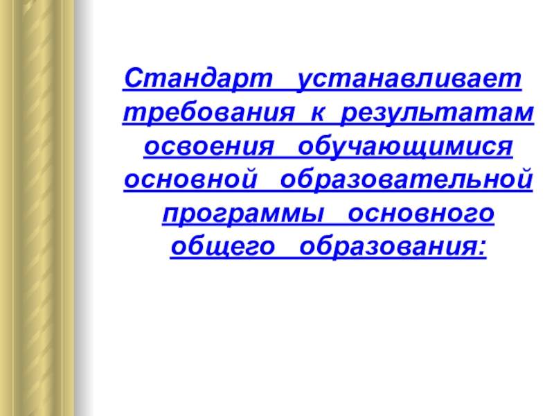 Слайд 7 Стандарт устанавливает требования к результатам освоения обучающимися основной