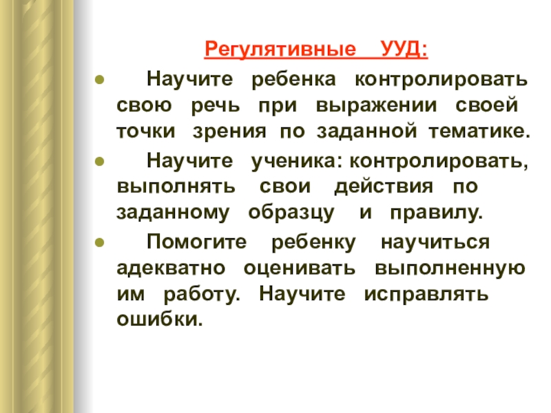 Научите ученика: контролировать, выполнять свои действия по заданному образцу и правилу.