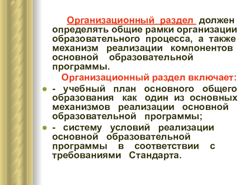 - учебный план основного общего образования как один из основных механизмов реализации основной образовательной программы;