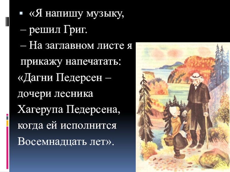«Я напишу музыку, – решил Григ. – На заглавном листе я прикажу напечатать: «Дагни Педерсен –