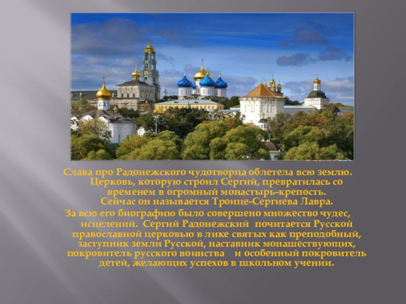 Слайд 3Преподобный Сергий Радонежский - это имя является одним из самых заветных
