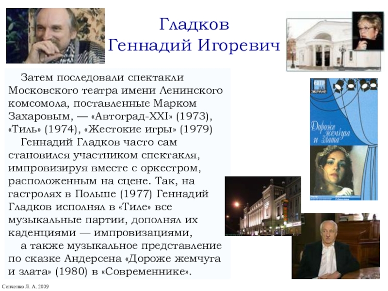 а также музыкальное представление по сказке Андерсена «Дороже жемчуга и злата» (1980) в «Современнике».