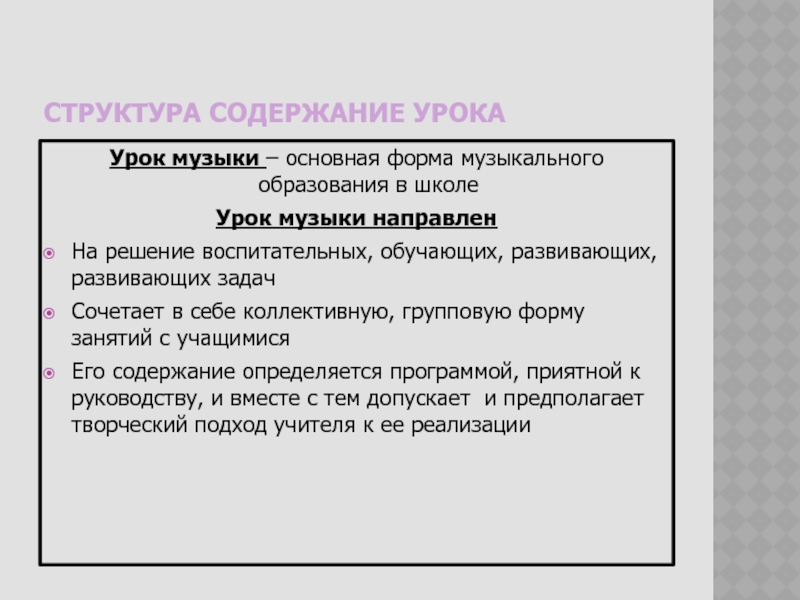 Слайд 14Содержание урока музыки