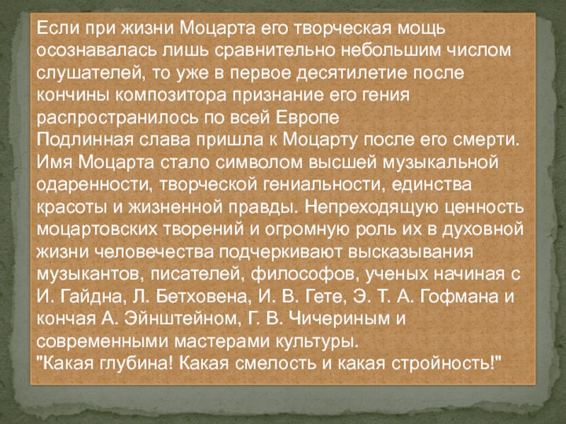 Слайд 17Если при жизни Моцарта его творческая мощь осознавалась лишь сравнительно небольшим