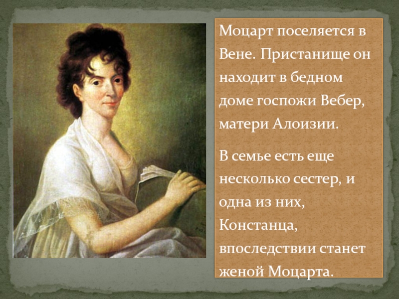 Слайд 11Моцарт поселяется в Вене. Пристанище он находит в бедном доме госпожи