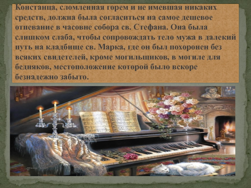 Слайд 16Констанца, сломленная горем и не имевшая никаких средств, должна была согласиться