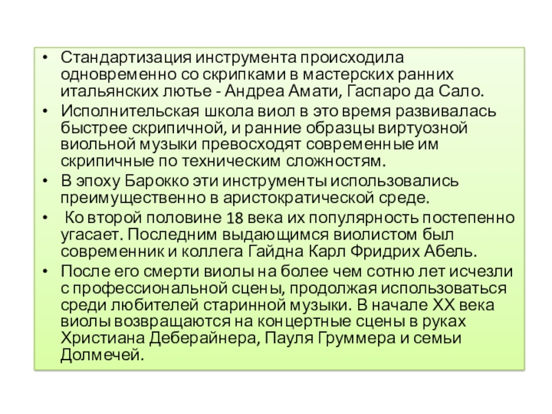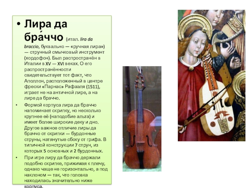 В это же время в Европе возник и новый способ игры на смычковых, при котором инструмент располагался на плече исполнителя, а не на ногах, как ранее.