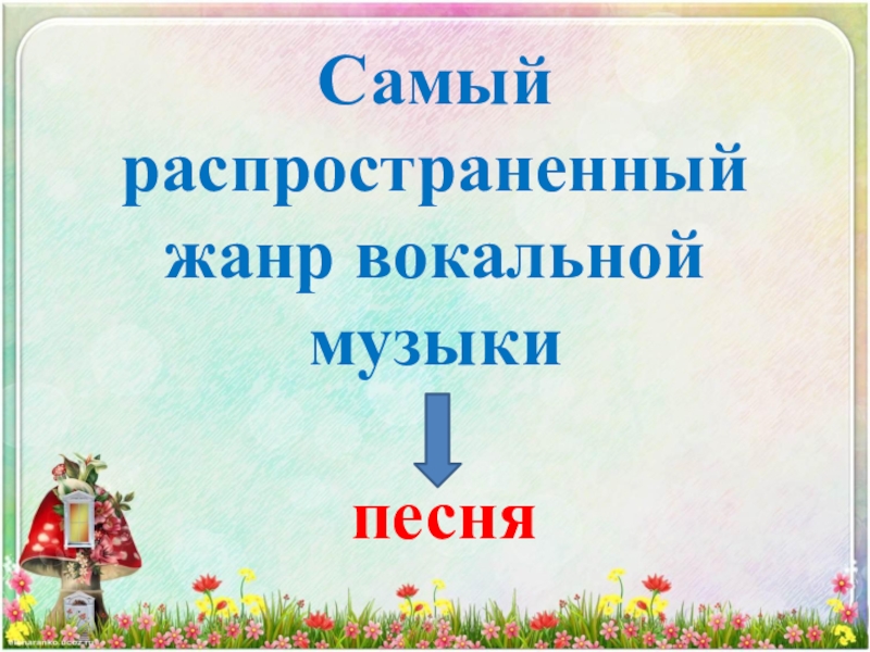 Слайд 6Самый распространенный жанр вокальной музыки песня