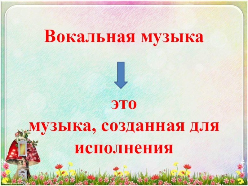 Слайд 2Вокальная музыка это музыка, созданная для исполнения