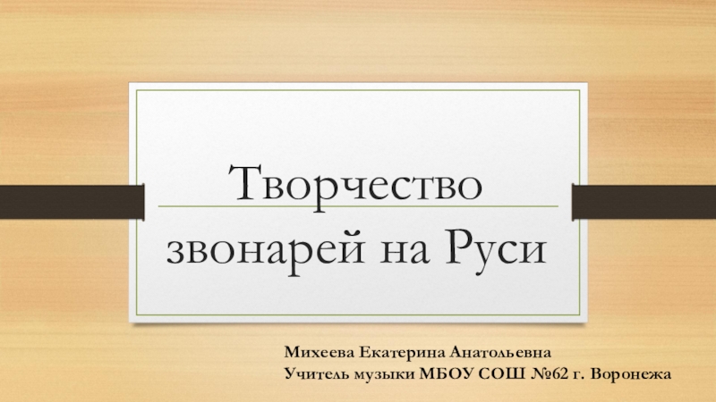 Творчество звонарей на РусиМихеева Екатерина АнатольевнаУчитель музыки МБОУ СОШ №62 г. Воронежа