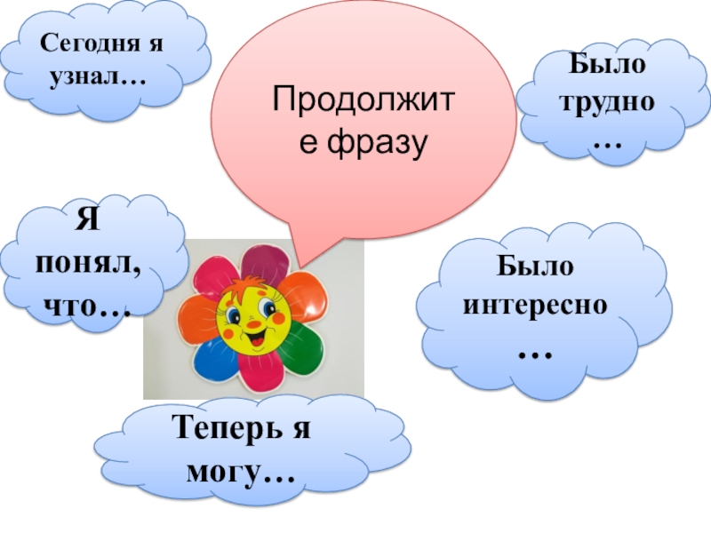 Продолжите фразуСегодня я узнал…Я понял, что…Теперь я могу…Было интересно…Было трудно…