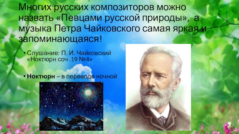 Слушание: П. И. Чайковский «Ноктюрн соч .19 №4»