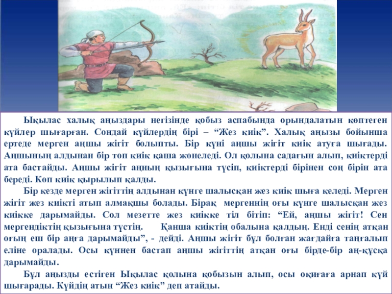 Ел арасында кеңінен таралған аңыз әңгімелерге арналған күйлерін атап беріңдер.