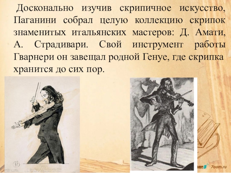 Слайд 11 Досконально изучив скрипичное искусство, Паганини собрал целую коллекцию скрипок знаменитых итальянских