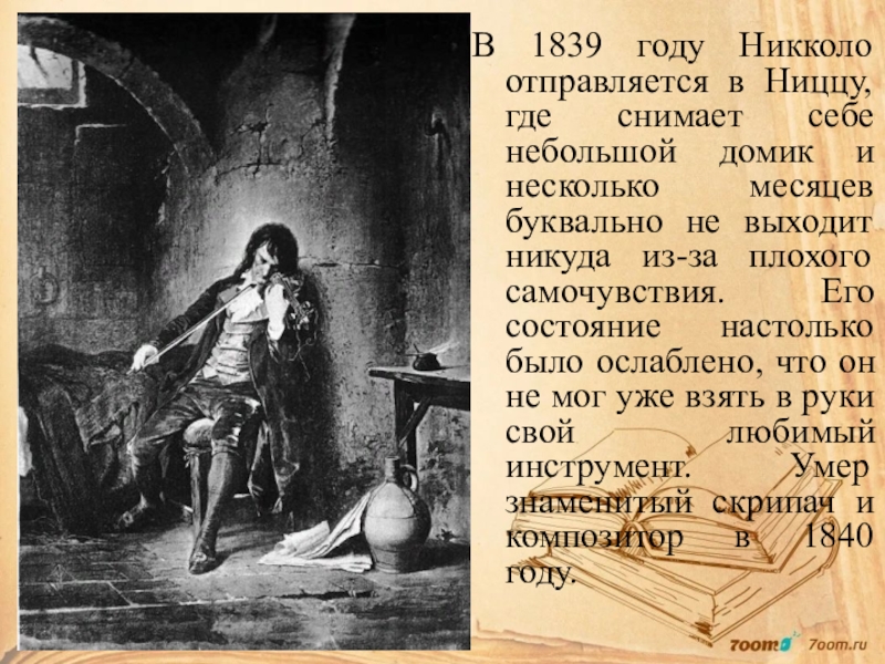 Слайд 13В 1839 году Никколо отправляется в Ниццу, где снимает себе небольшой