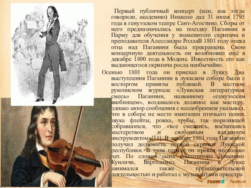 Слайд 5 Первый публичный концерт (или, как тогда говорили, академию) Никколо дал 31