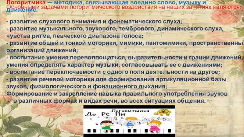 Логоритмика — методика, связывающая воедино слово, музыку и движение.