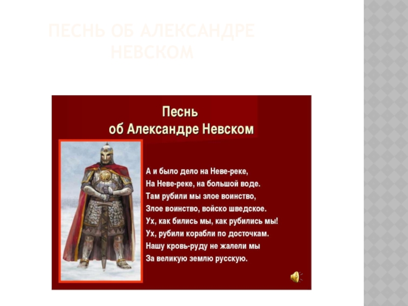 Слайд 9ПЕСНЬ ОБ АЛЕКСАНДРЕ НЕВСКОМ