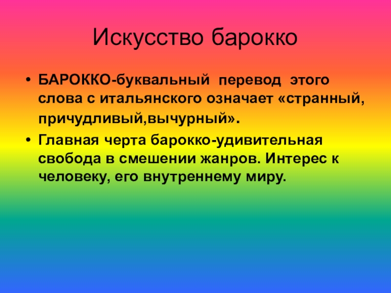 БАРОККО-буквальный перевод этого слова с итальянского означает «странный,причудливый,вычурный».