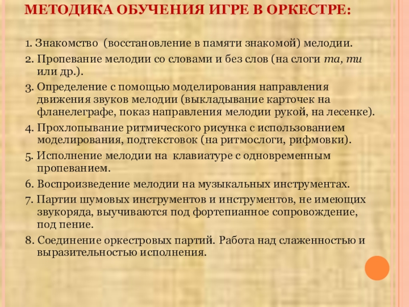 МЕТОДИКА ОБУЧЕНИЯ ИГРЕ В ОРКЕСТРЕ: