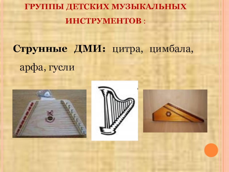 Струнные ДМИ: цитра, цимбала, арфа, гусли