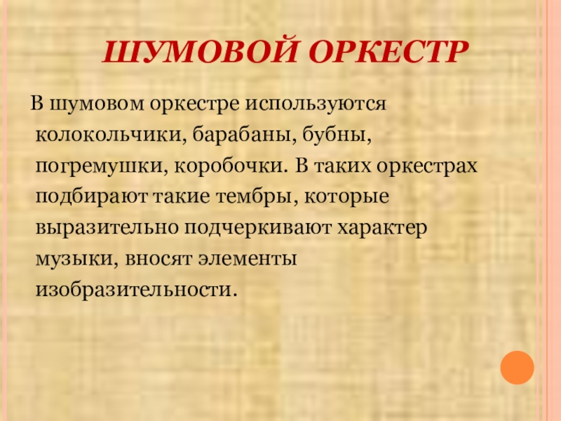 Слайд 18ШУМОВОЙ ОРКЕСТР