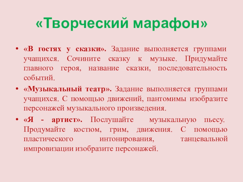 Слайд 19- «Разыграй песню». Ребятам предлагается придумать сценическое исполнение песни. Продумать костюм,
