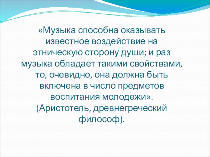 Слайд 2«Музыка способна оказывать известное воздействие на этническую сторону души; и раз